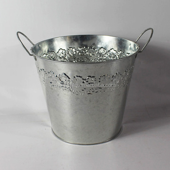 Xô Hoa Tròn Có Tay Cầm Mạ Kẽm Cho Nhà Và Vườn